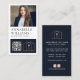 Modern, elegant and professional real estate agent business card with a photo placeholder that reflects your personality and make a great first impression. Design features single photo, qr code, name, your title and real estate logo on the front. Personalize further with your contact details and social media on the back.