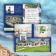 Advertise your photography business with this folded brochure. Made as a real estate photo business, but change the text for something else. Dark blue background on both sides of 8.5 x 11 inch paper with six photo templates, a QR code area, "about me" with personal photo, and front page with name and paragraph for services offered. Fold in half after purchase. This brochure was created for the large size, if you change it, the images may fit differently.