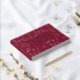 Real Foil Botanical Floral Wedding Guest Book features a vintage flower frame border in silver foil script with your names, location and wedding date on a maroon background. Add your custom text on the spine of the guest book. Created by Evco Studio www.zazzle.com/store/evcostudio