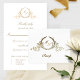 Elegant folded RSVP card with beautiful hand-drawn wreath monogram with real Foil in front and back. Inside with monogram and text in golden hues (not foil). Option to add or erase meal choices, and add in its place an encouraging note for your guests (i.e. "hope you can make it, can't wait to see you there!"). Option to add the name(s) and event on the back, or use this section for any other text/details like wedding website or such, or erase all text on back if you prefer it blank. Part of our "Elegant Calligraphy Minimalist Wedding" collection with a variety of coordinating products available, including real foil matching wedding invitations. Visit the entire collection at: https://www.zazzle.com/collections/elegant_calligraphy_minimalist_wedding_stationery-119497981924462546