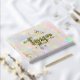 real foil company logo on opal stone guest book