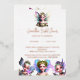A 5x7 inch canvas of pure enchantment—its stark white background sparkling with real rose gold foil text that you can personalize to weave your own fairytale. Adorned with vibrant, iridescent pixie fairies, each with glittering wings and glowing auras, this invitation beckons you into a realm where fairy dust floats gently and games of hide and seek are afoot.