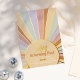 Add some shine to your birthday party invitations with real gold, silver, or rose gold foil! This classic and timeless metallic style is sure to add another level to your invites. Retro-inspired birthday party invitations with a hippie-style sun, colorful daisies, and groovy fonts. The front of this card features a hand-drawn sun with rays of sunshine in different pastel rainbow colors framed with real foil. Inside the center of the sun, the birthday girl's name is written in a foil-pressed chic handwriting script. Her age appears underneath in bold groovy typography. The cards reverse to a cute pattern of colorful daisy flowers. Perfect for any age girl. For boho events, retro 60s or 70s themes, hippie styles, spring birthdays, pool parties, summer fun, sun-themed celebrations, and more! This invitation template is editable online, simply click on "Personalize this template" to get started. If you want to edit fonts, placement, foil, or colors, simply scroll to "Click to customize further" and use the Zazzle design tool. You can easily choose from gold, silver, and rose gold foil from the tool above. Please note the cards are printed as you see them on your screen when ordering, so be sure to double-check for typos! A photo version of this design is available in the collection linked on this page. Browse my store for more sunshine birthday party invitations.