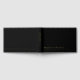 Real Foil Simple Modern Gold Script Wedding Guest Books features elegant modern gold script typography with your names and wedding date below on a black background. Add your custom text on the spine of the guest book. Created by Evco Studio www.zazzle.com/store/evcostudio