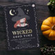 Wicked Witch Black Cat Halloween Party Invitation features a witch and her cat with real foil. Great for house party or girls night out Halloween party.