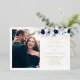 Real Gold and Royal Blue Flowers Photo Wedding Foil Invitation
