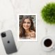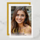 real gold foil Modern Class of 2026 script gold border photo invitation/announcement. It features a photo of the graduate and the text "Class of 2026 in real gold foil.