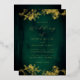 Real Gold Foil Floral Lace Script Emerald Wedding Invitation