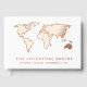 This stunning, modern wedding guest book features a white background with a real gold foil world map and matching text that says "the adventure begins." Perfect for the wedding of any couple who loves to travel, or anyone having a destination wedding.