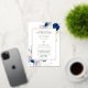 Real Gold Modern Blue White Flowers Wedding Foil Invitation