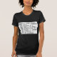 My overall review is that the T-shirt is nice, it fits true to size however the font is significantly smaller than advertised and you can't read it. The printing is unreadable and there is a strain to read it. It does not look like the advertised product. Maybe the shirt color is darker or a larger more visible font should have been used. Photos with and without flash and font is barely legible.