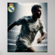 Wall Art & Décor: A dynamic, single-line silhouette of a Real Madrid player in mid-flight