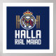 Wall Art & Décor: A minimalist typographic design showcasing the iconic Real Madrid phrase "Hala Madrid" in a bold, contemporary font.