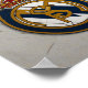 Royal gold Real Madrid logo on a white background, framed by subtle navy lines for an elegant touch.
