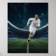 Wall Art & Décor: A surrealist painting of a football field bathed in ethereal light, the Real Madrid crest glowing amidst a swirling, starry night sky.