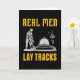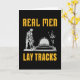 Cool design featuring a track builder at work and the quote "Real men lay tracks".