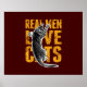 Real Men Love Cats in grunge style on a burgundy red decor. A stylish humorous statement gift for cat lovers off course, and for loved ones who try to cope with the family pet.