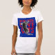 My overall review is that the T-shirt is nice, it fits true to size however the font is significantly smaller than advertised and you can't read it. The printing is unreadable and there is a strain to read it. It does not look like the advertised product. Maybe the shirt color is darker or a larger more visible font should have been used. Photos with and without flash and font is barely legible.