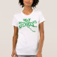 The material is a great quality that is hard to find with most tee shirts. Fabric was not see-through or thin at all, but was also very soft and comfortable. The shirt description states that it runs a little small, so I sized up one size for a perfect fit! I would definitely buy this type of tee shirt again because I love the fit and high quality fabric that I cannot find anywhere else. The printing was perfect and just as pictured. Loved the cute quote and really enjoy the tee in both the quality and design. I love quirky typography designs and funny quotes and I am extremely pleased with the overall quality and value I get at Zazzle!