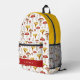 This cute backpack features a white background with mushroom & snail pattern in pink, red and yellow. Personalize it for your needs. You can find matching products at my store.