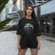 My 11 yo wore adult XL (5’7” 165#). The 8yo is small framed. She wore adult small and tied it in the back. Grandma wore adult large with long sleeve shirt underneath. Tall girl adult medium. Dark haired male adult large. Good quality dark Heather gray, Gildan brand shirt. -it was next up from basic choice and cost about $20 per shirt. Not too thick or thin. Washed and dried well, no major shrinkage. Not see-through. Can wear a bra under it fine. Screen print is just as shown and well done, front and back.