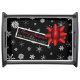 This festive serving tray looks like a wrapped Christmas gift! It features the on-trend Christmas colors black, red and white. Falling white snowflakes on a black background create the simulated wrapping paper which is topped with a realistic looking red star shaped bow and a Christmas tag that can easily be personalized. This fun serving tray is the perfect addition to your home this holiday season.