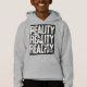 My 11 yo wore adult XL (5’7” 165#). The 8yo is small framed. She wore adult small and tied it in the back. Grandma wore adult large with long sleeve shirt underneath. Tall girl adult medium. Dark haired male adult large. Good quality dark Heather gray, Gildan brand shirt. -it was next up from basic choice and cost about $20 per shirt. Not too thick or thin. Washed and dried well, no major shrinkage. Not see-through. Can wear a bra under it fine. Screen print is just as shown and well done, front and back.