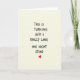 This funny Valentine's Day card keeps things simple with an off-white background and a single message in the center. The text reads, “THIS IS TURNING INTO A REALLY LONG ONE NIGHT STAND,” and it’s written in black, hand-drawn block-style letters that look slightly uneven, like a quick note. The words take up most of the card, stacked in lines so they’re easy to read. Just below the last line, there’s a small red heart that stands out right away ❤️. The heart looks hand-sketched too, and it adds a sweet touch to the funny, honest message.