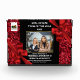 A luxury, elegant design featuring a photo of the person/s receiving the award edged along the top and bottom edge with a horizontal faux gold border. The photo templates rests against a black background that has a faux glitter shimmer edge on either side of the design. Satin bows in a vibrant maroon hug the top right and bottom left corners and a logo template appears in the top left corner. Personalize the templates to suit your corporate or business requirements.