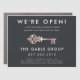 Announce the reopening of your real estate office or property management company with this car magnet that's perfect for realtors, agents, and brokers. Modern design features white lettering on a soft off-black background with a vintage skeleton key illustration in faux rose gold foil. Personalize with your preferred headline, business name, and contact information, along with details on what steps your business is taking to maintain social distancing and reduce the spread of covid-19.