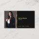 Professional real estate business card featuring a bold black background, gold accent line, and a stylish gold house logo. The design includes a space for your photo and a scannable QR code, perfect for directing clients to your listings, website, or digital portfolio.
