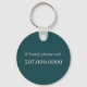 On this attractive keychain, a teal blue silhouette rearing horse is placed on a retro style circle rainbow background of distressed stripes. The image is bordered in matching teal blue. The back is teal blue, with your custom text in two fields. You may personalize it with your name, or phone number in case your keys are lost and found.
