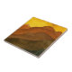 Receding mountain ranges with yellow sunrise sky ceramic tile