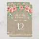 This option has a faded brown distressed barn wood background with white lettering that pops against the darker color. Personalized "Mr. & Mrs." Bohemian style table numbers are a delightful and inexpensive way to add to your reception decor with stylish design. This trendy BOHO chic style is perfect for a wedding that is rustic, elegant and relaxed! This flower crown of blush coral pink roses, baby's breath and leaf foliage is in a loose, fun style with script calligraphy typography headings in a handwritten style (YES we can customize these for you, just message us and allow a few days to create them for you). The background is in a soft weathered wood with subtle swirls and a double arrow typographic divider separates the details. On the reverse side are your initials and the arrow flower design. Art copyright Audrey Jeanne Roberts, all rights reserved.