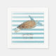Painted Illustration Sea Turtles Personalized Reception Beach Themed Napkins. Beautiful illustrated sea turtle with blue striped background. Customize with your name, business name or event and date. Perfect for the destination wedding, shower, or other beach or nautical themed celebration. Design by Jenn's Emporium.