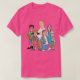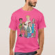My 11 yo wore adult XL (5’7” 165#). The 8yo is small framed. She wore adult small and tied it in the back. Grandma wore adult large with long sleeve shirt underneath. Tall girl adult medium. Dark haired male adult large. Good quality dark Heather gray, Gildan brand shirt. -it was next up from basic choice and cost about $20 per shirt. Not too thick or thin. Washed and dried well, no major shrinkage. Not see-through. Can wear a bra under it fine. Screen print is just as shown and well done, front and back.