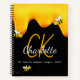 A stylish black background and happy smiling bumble bees. Decorated with sweet, golden honey dripping. Personalize and add your name, monogram initials, and a title. Golden and white letters. The name is written with a hand lettered style script. For your favorite summer food recipes.