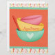 These recipe binder dividers are the perfect match to our "Cooking Is An Art" recipe binders and recipe cards. Adorable kitchen utensils in the background, and customizable text on pastel kitchen bowls.