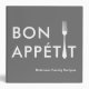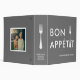 Personalize this "Bon Appetit" family cookbook, with the text, color, and photograph of your choice. The white fork can be moved or removed.