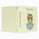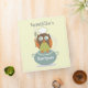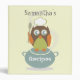 A recipe binder featuring an illustration of a brown, green, and orange owl wearing a chef's hat and holding a spoon in its wing. Owl sits on a blue cooking pot with handles. Personalize with your name.