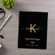 A cookbook notebook for a foodie and your favorite vegitarian recipes. Black background, white and golden text. Decorated with a small faux gold leaf. Personalize and add your monogram initial, name and text.