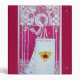 Elegant ,classic design, pink magenta white Art Nouveau vintage re-elaboration with brignt 3D ruby gem stone and gold celtic heart with knots easily customizable with your initials.