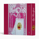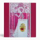 Elegant ,classic design, pink magenta white Art Nouveau vintage re-elaboration with brignt 3D ruby gem stone and gold celtic dragon with knots easily customizable with your initials.