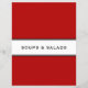 Custom double sided recipe divider page for a red cookbook recipe binder; one design of a matching set. Features a simple modern minimalist design in a red black and white color palette with customizable text presented on a coordinating white banner with black accents