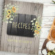 A charming rustic farmhouse recipe organizer cooking book with vintage wood and yellow gold sunflowers bouquets. ++++++++++ Personalize it with chef monogram, name and your text! +++++++++ It can be a modern personal blank recipe journal book for your kitchen, a grandma's family cookbook, or a beautiful custom keepsake gift for a bridal shower, wedding, or family anniversary.