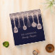 Introducing our Recipe Cookbook Rose Gold Glitter Kitchen Utensils 3 ring binder. Featuring faux blush pink glitter, kitchenware. and customable texts on navy blue background. Suitable as gift for cooking enthusiasts or as a family recipe organizers.
