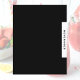 Custom double sided recipe divider page for a black and white cookbook recipe binder. Features a simple modern minimalist design in a classic black and white color palette with customizable text presented on a coordinating tab.