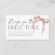 This request for a recipe for the bride-to-be with blush pink bow can be sent with the invitation. You can ask your bridal shower guests to bring a favorite recipe to share with the future bride. It is perfect for a "Shes tying the knot" themed bridal shower.
