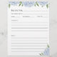 Recipe Full Page Sheet for Binder, Blue Hydrangea