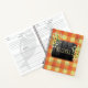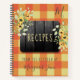 A charming rustic vintage farmhouse recipe organizer cooking book with yellow gold sunflowers bouquets over a rusty orange yellow terracotta gingham plaid pattern. ++++++++++ Personalize it with chef monogram, name, and your text! +++++++++ It can be a modern personal blank recipe journal book for your kitchen, a grandma's family cookbook, or a beautiful custom keepsake gift for a cooking lover, a chef, for a bridal shower, wedding, family anniversary, birthday, Christmas.